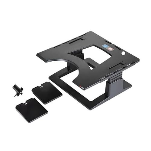 The 13.25 in x 13.25 in platform fits most laptops up to 17 inches, providing a stable, non-slip surface that keeps your device secure during use. Its adjustable height from 4 in to 6 in allows you to customize the elevation for optimal viewing angle and ergonomic alignment.