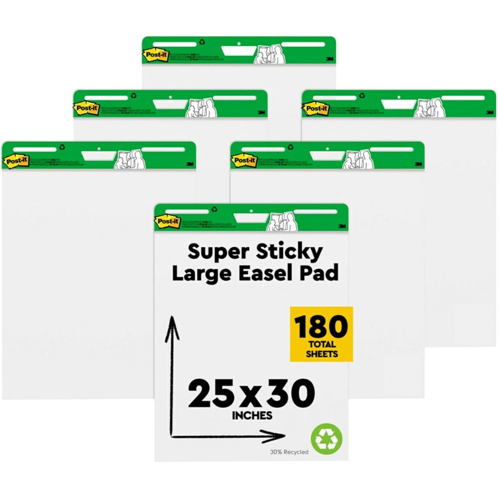 3M Post-it Easel Pads – Super Sticky Self-Stick, 25 in x 30 in, White Recycled Paper, 30 Sheets per Pad, 6 Pads per Carton