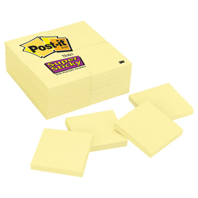 3M Post-it Super Sticky Canary Yellow Note Pads – Bright and Strong-Holding, 3 in x 3 in, 90 Sheets per Pad, 24 per Pack