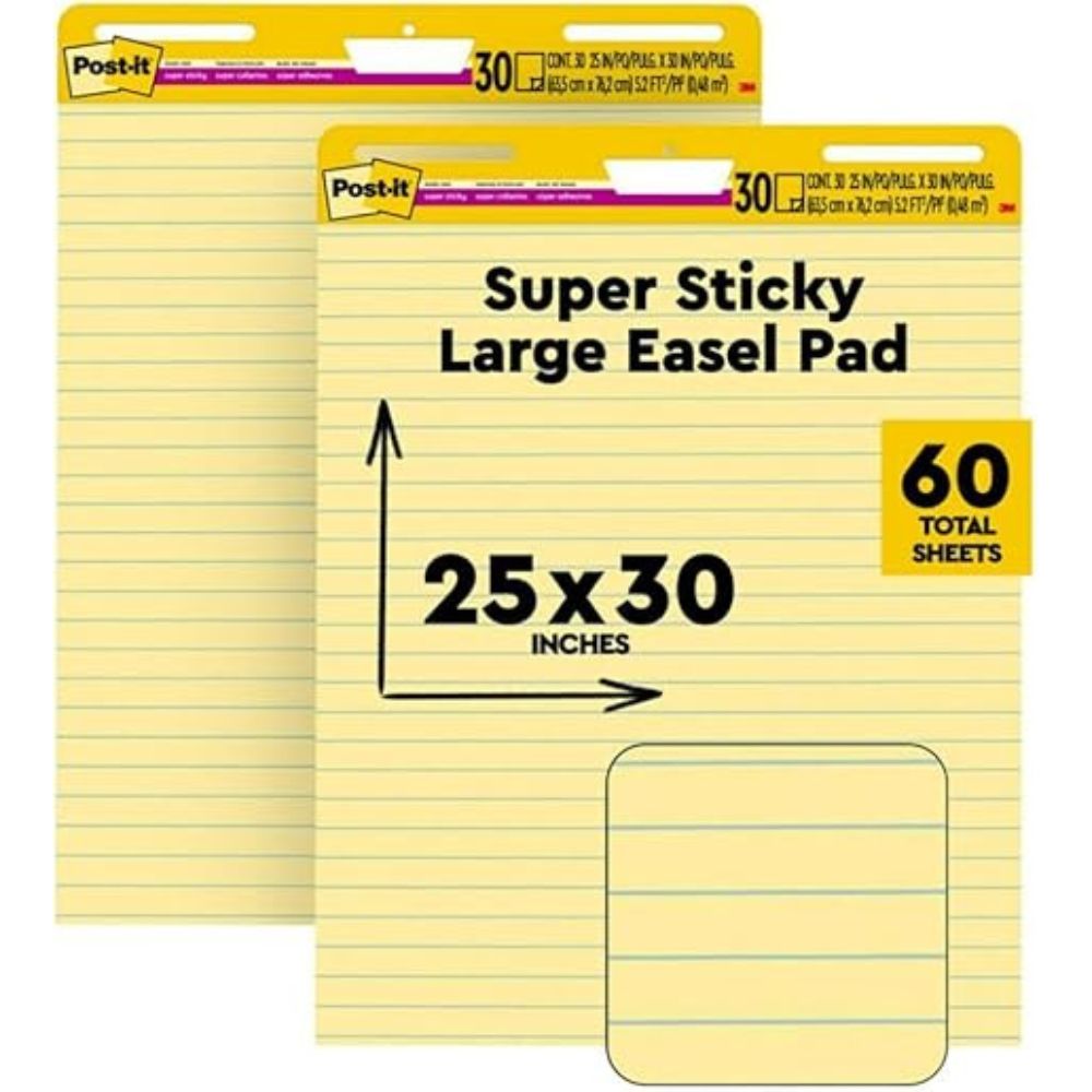 3M Self-Stick Easel Pads – Faintly Ruled, 25 in x 30 in, Canary Yellow, 30 Sheets per Pad, 2 Pads per Carton