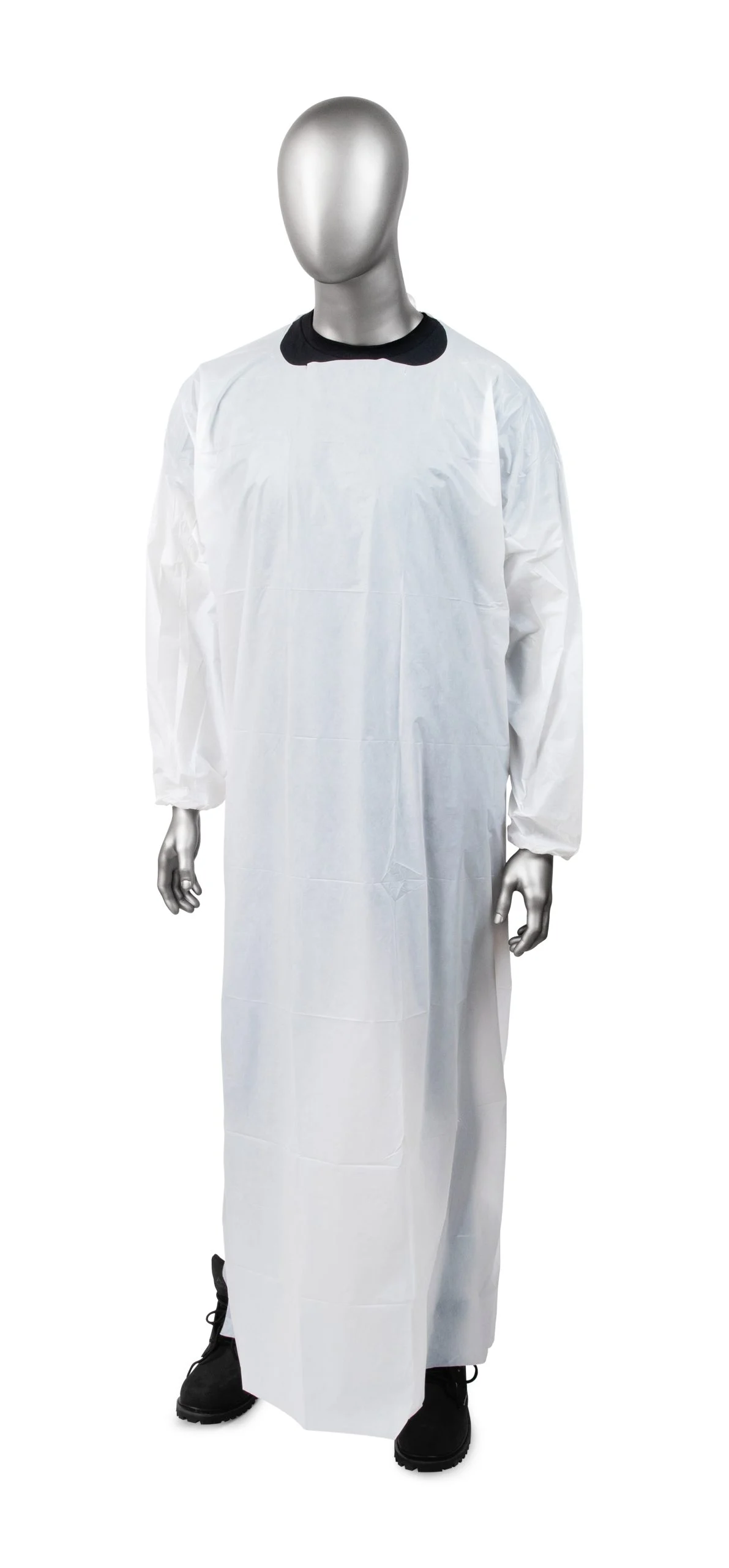 AMBISHIELD CPG60WEW 60″ WHITE 1.75 MIL CPE GOWN WITH ELASTIC WRISTS 100 50/BAG, 2 BAGS/CS