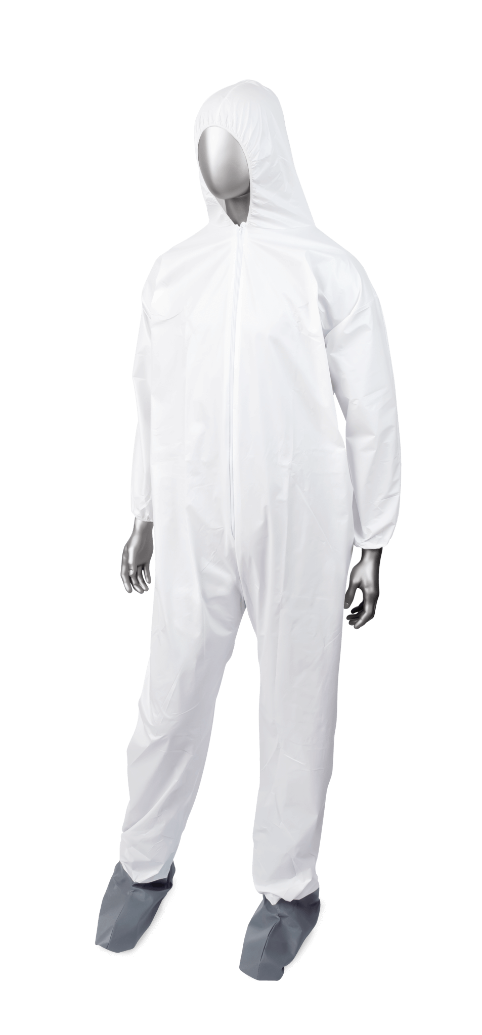 AMBISHIELD MPCVMDHB MD WHITE MICROPOROUS COVERALL, ZIPPER FRONT, ATTACHED HOOD AND BOOTS, ELASTIC WRISTS 25 25/BAG