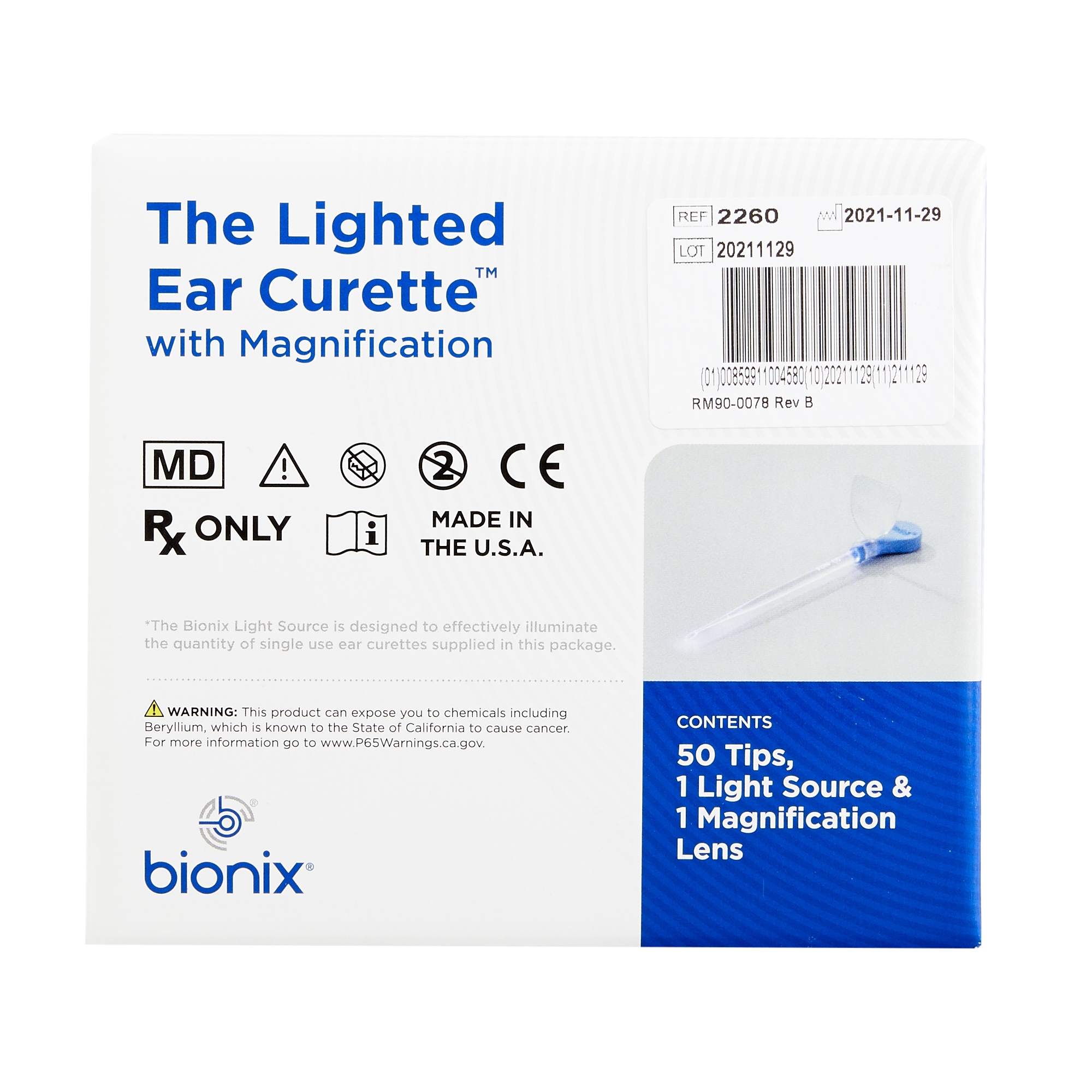 The Bionix 2260 is a single-use, lighted ear curette with a 2mm InfantScoop® tip, designed for safe and efficient cerumen removal in infants with enhanced visualization.