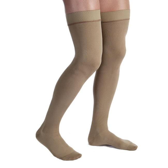 Elevate your leg health with BSN Jobst for men thigh stockings in khaki. Perfect for men needing gentle compression support.
