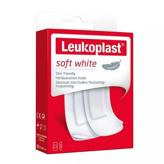 BSN Leukoplast Soft White Dressings—certified medical adhesive for reliable wound care; hypoallergenic, assorted sizes, 30-pack box.