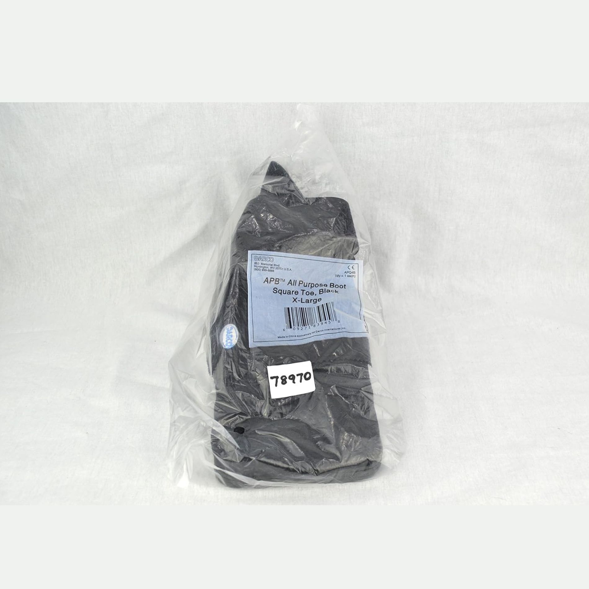 DARCO APQ4B refers to the +POST-OP BOOT in an extra-large (XL) size with a square toe design and black color. It is sold individually (1/EA), with 12 units per box (12/BX) and 36 units per case (36/CA). This All Purpose Boot (APB) offers nearly perfect four-season post-operative protection with a closed-toe design to keep dressings and toes warm and dry. It is versatile enough to accommodate both bulky dressings and most fiberglass casts. The boot features a Zoned Outsole with aggressive tread under the midfoot for optimal traction. The rocker sole reduces plantar pressure under the forefoot and heel by over 25%. The square toe design acts as a bumper to protect toes, especially with K-wires, and provides a better left/right fit. An ankle strap secures the foot to reduce heel slippage and friction. It has a removable forefoot closure to eliminate buckle pressure and a unique metatarsal shank under the MP joints for increased support and rigidity under the forefoot. The removable insole has twice the padding of standard insoles and can be modified or removed to accommodate DARCO’s Peg Assist customizable off-loading insole.