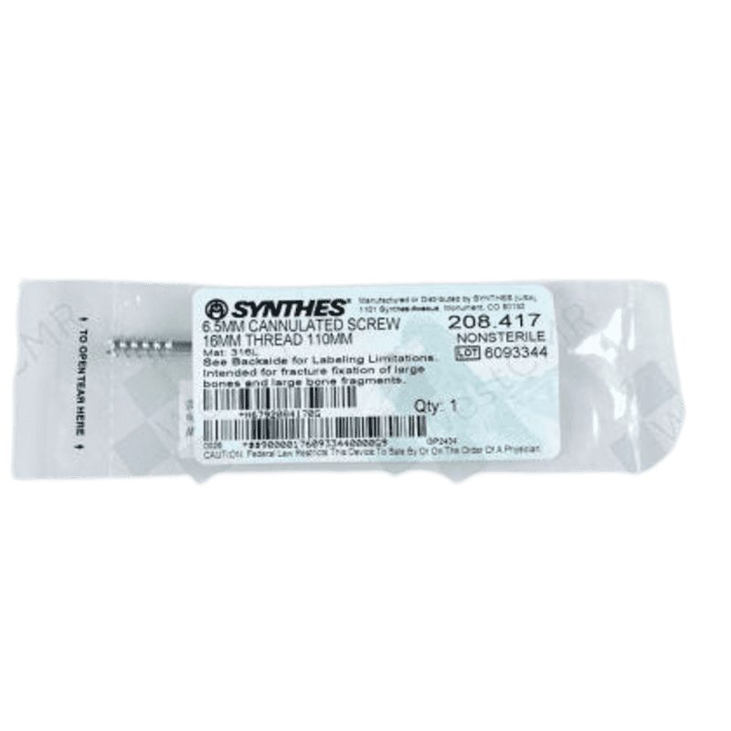 The DEPUY 208.417 Cannulated Screw is engineered to provide superior stability during orthopedic surgical procedures. Fabricated from high-quality stainless steel, this screw measures 5.5mm in diameter and 110mm in length, making it suitable for a variety of bone fixation applications. Its cannulated design allows for easy insertion over a guide wire, enhancing surgical efficiency and precision.