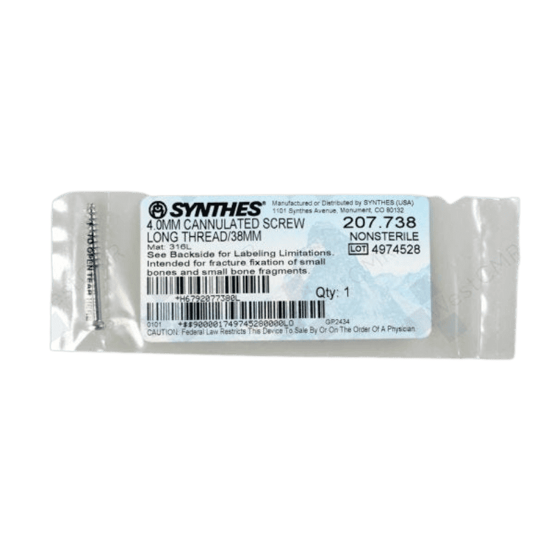 The DEPUY SYNTHES 207.738 is a high-quality 4.0mm screw featuring a long thread design and a length of 38mm. Manufactured from medical-grade materials, this screw ensures reliable fixation in various orthopedic applications. Its design promotes stability and durability in surgical procedures.