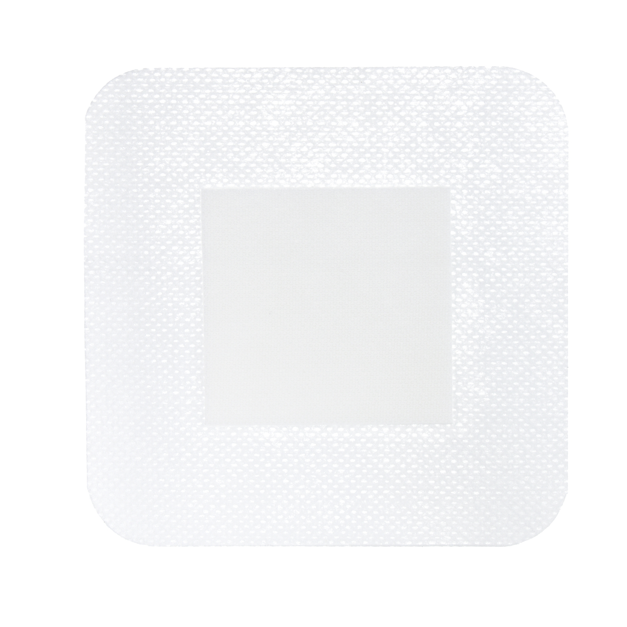 This sterile, square dressing features a multi-layered construction with a waterproof film backing. It includes a 4-inch by 4-inch absorbent pad at its center. The dressing has a low-adherent contact layer to protect the wound and a non-woven adhesive tape to hold the dressing in place while maintaining a moist wound environment. It is packaged with 10 dressings per box