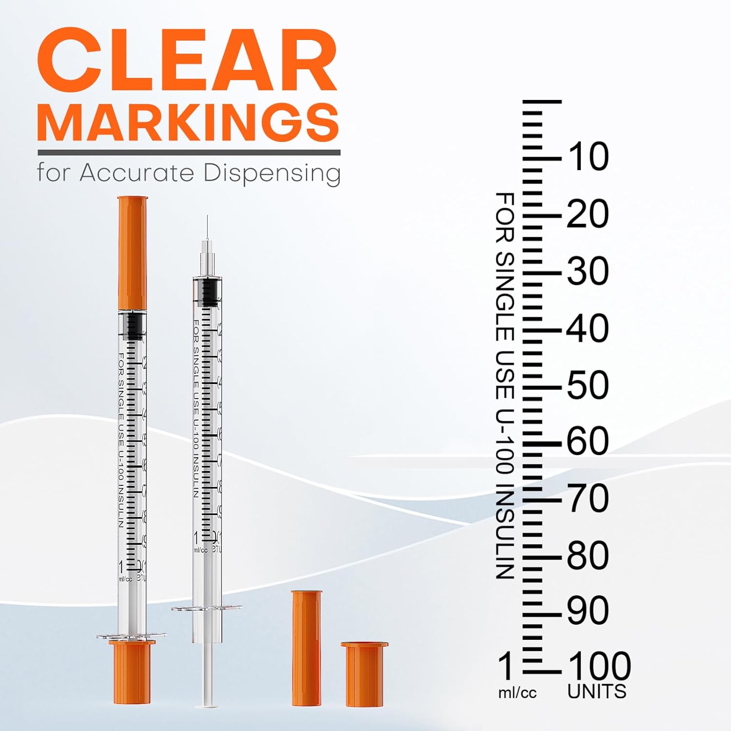 Each syringe is individually sealed for sterility and convenience, making it ideal for home use, travel, or clinical settings. Not made with natural rubber latex. Compatible with standard insulin injection techniques and pen-like handling without a pen device.