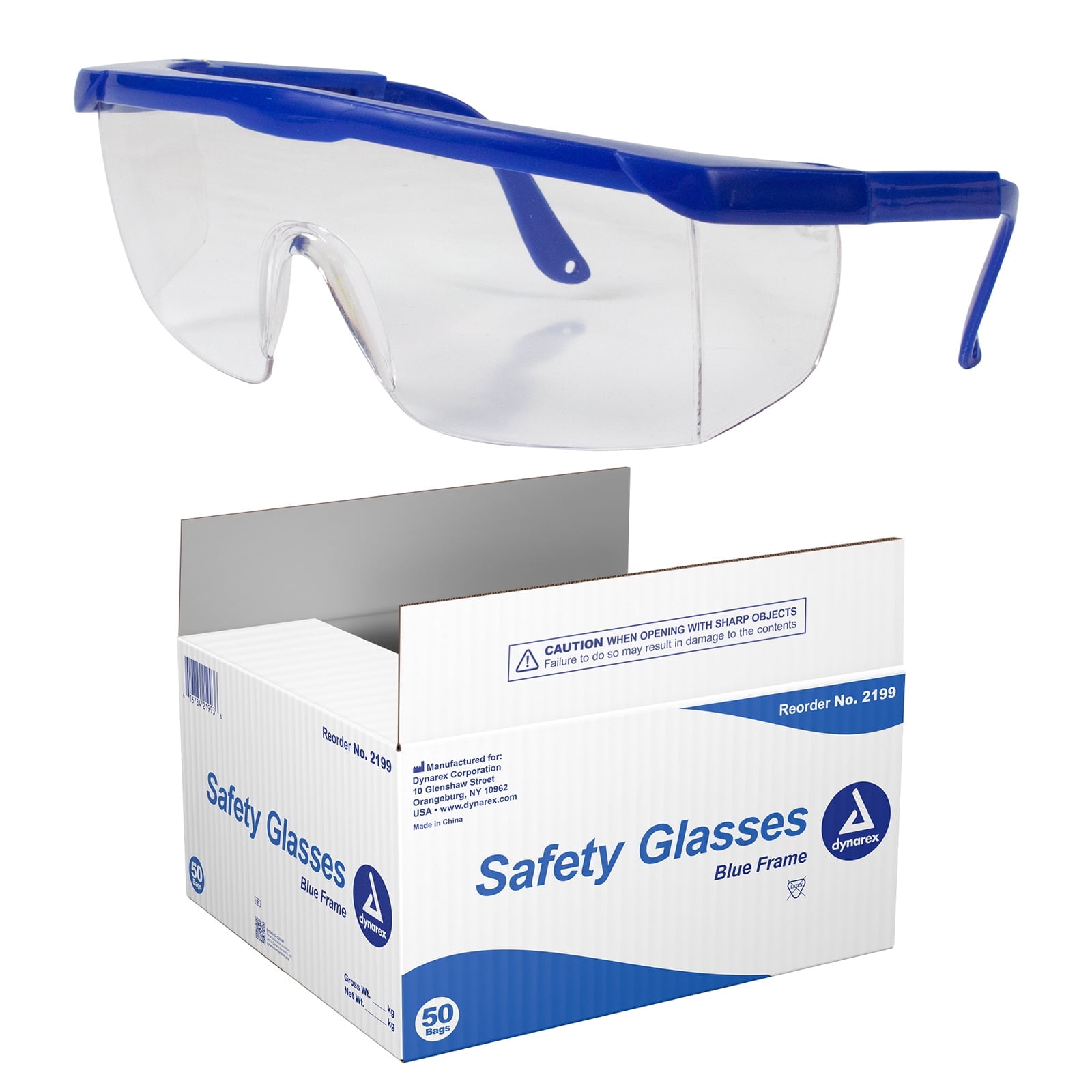 Dynarex 2199 Safety Glasses, Blue frame, 50/cs