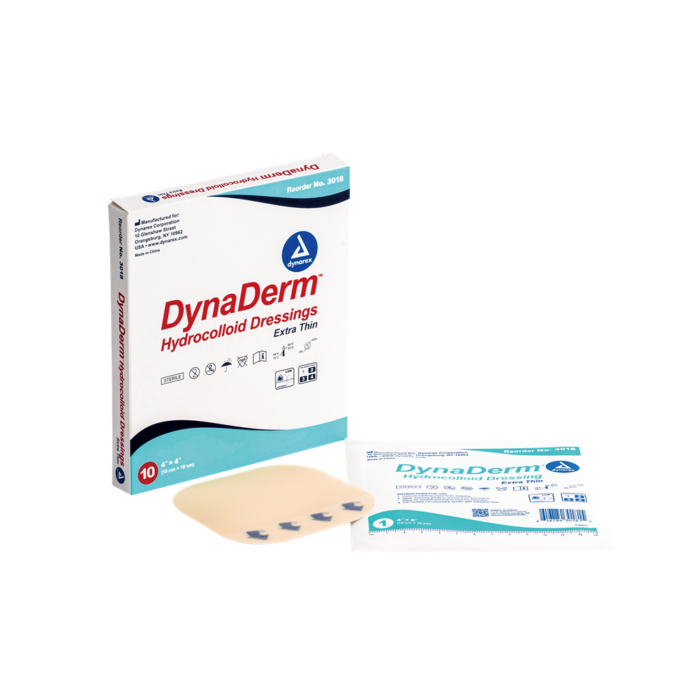 Dynarex 3018 DynaDerm Hydrocolloid Dressing – Extra Thin, 4″ x 4″ provides optimal moisture balance for fast healing; trusted by healthcare professionals.