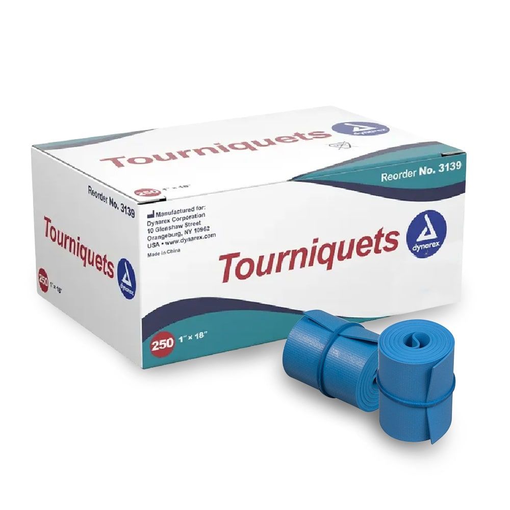 Dynarex 3139 Tourniquets – Reliable latex-free solution for medical professionals; 1″ x 18″, blue, bulk pack of 250 for efficiency and convenience.
