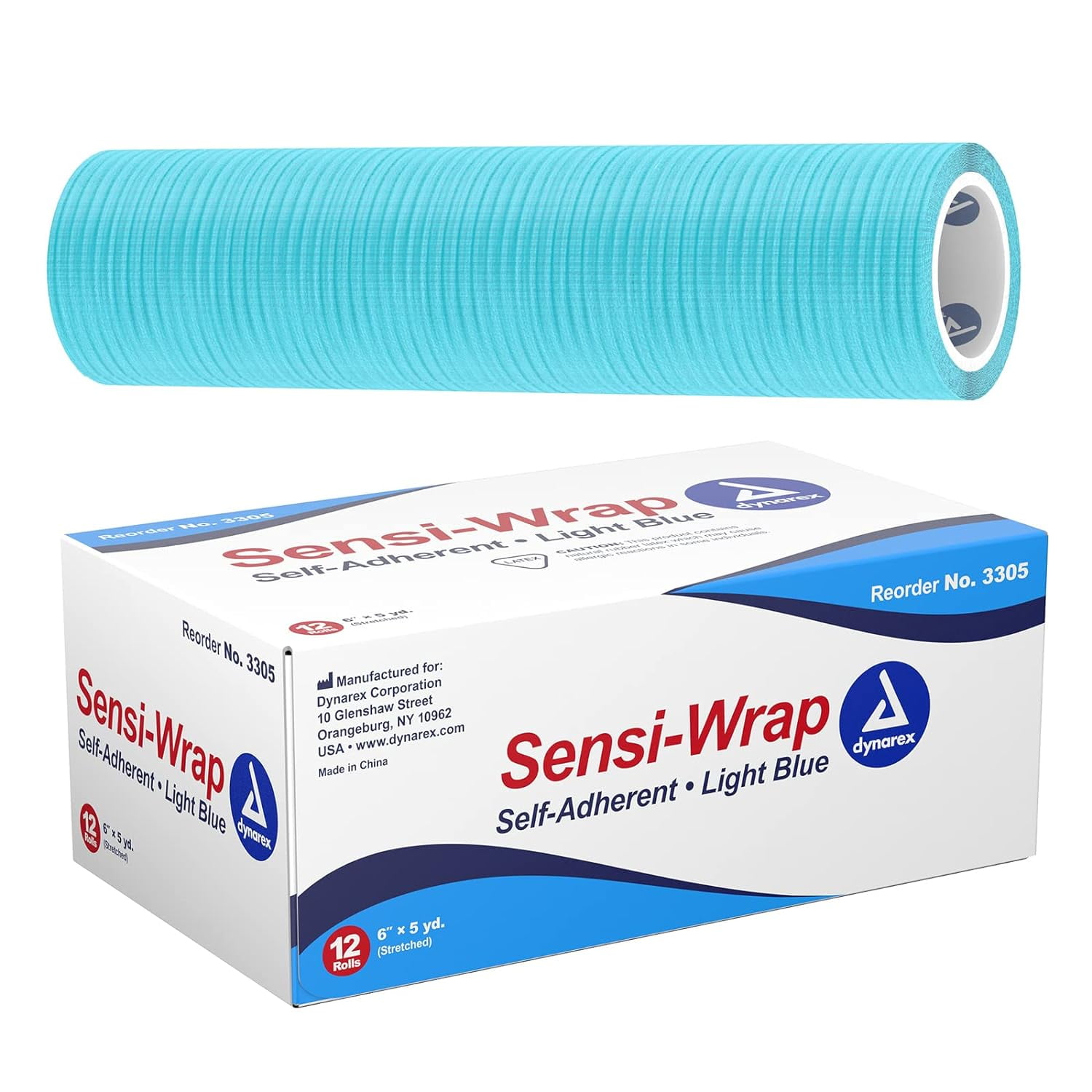 Dynarex 3305 Sensi Wrap, Self-Adherent, 6″ x 5 yd Light Blue, 12/cs