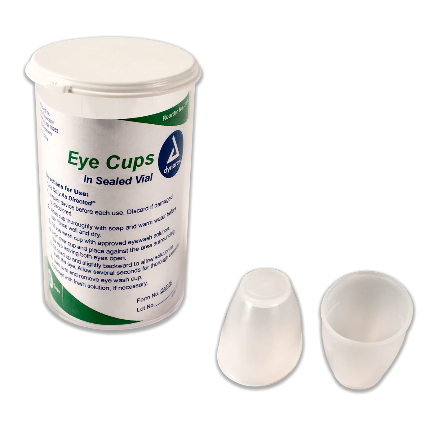 The Dynarex 3380 Eye Cups in a Vial are sterile, disposable eye irrigation cups designed to safely and effectively flush foreign particles such as dirt, sand, and debris from the eyes. Each cup is made from high-quality, molded plastic that creates a secure seal around the eye socket, minimizing leakage during use for reliable and controlled eye washing.