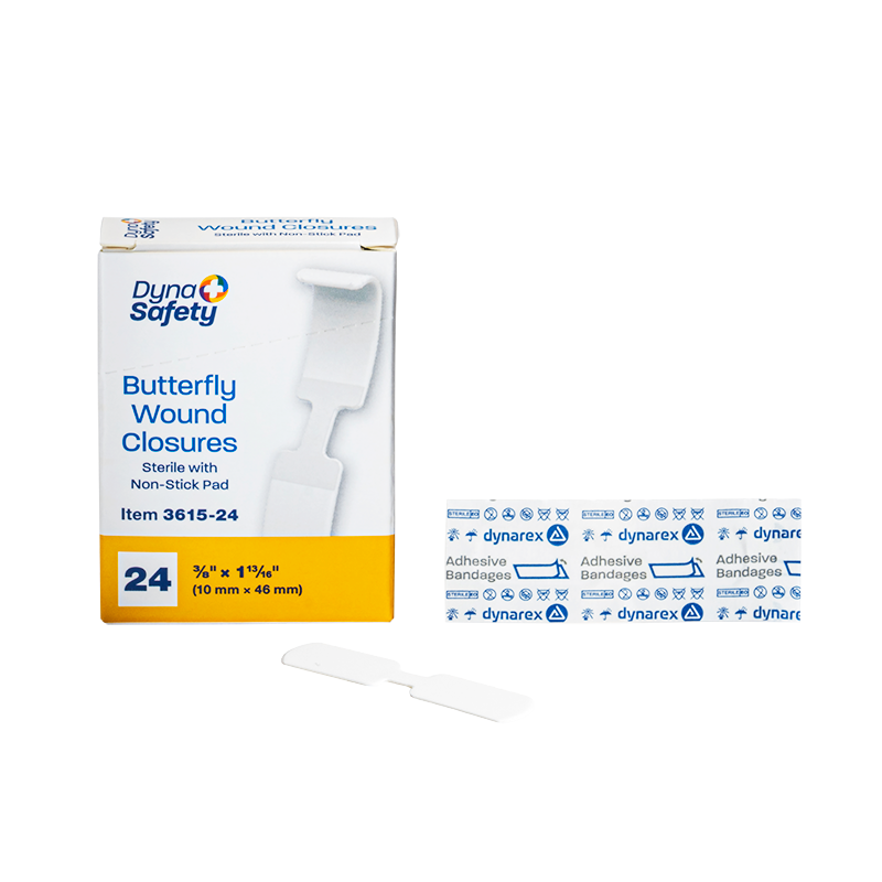 Dynarex 3615-24 Butterfly Wound Closure – Sterile — secure, sterile closures for wounds; ideal for medical professionals and first aid kits.