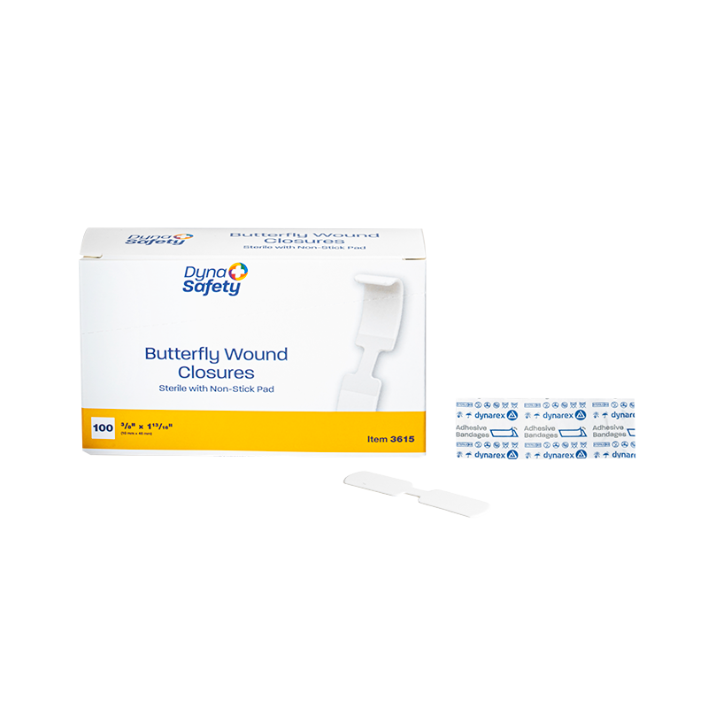 Dynarex Butterfly Wound Closure – Sterile, 3/8″ x 1 13/16″, 24/10/cs. Securely close wounds with precision. Ideal for medical professionals and emergency responders.
