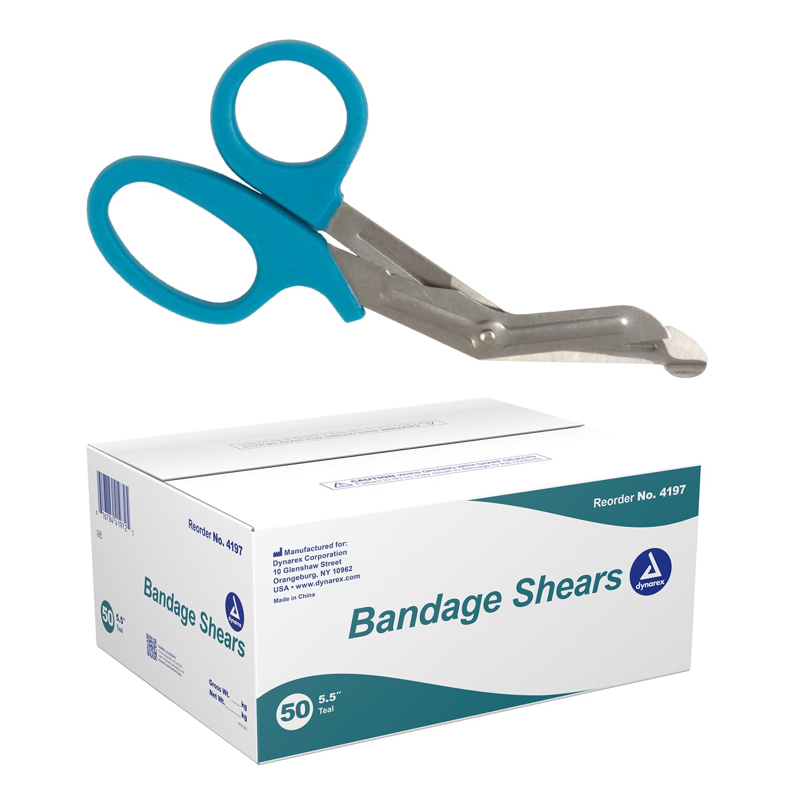 Dynarex 4197 Bandage Shears—precision cutting for medical professionals; durable stainless steel construction; teal color for visibility.