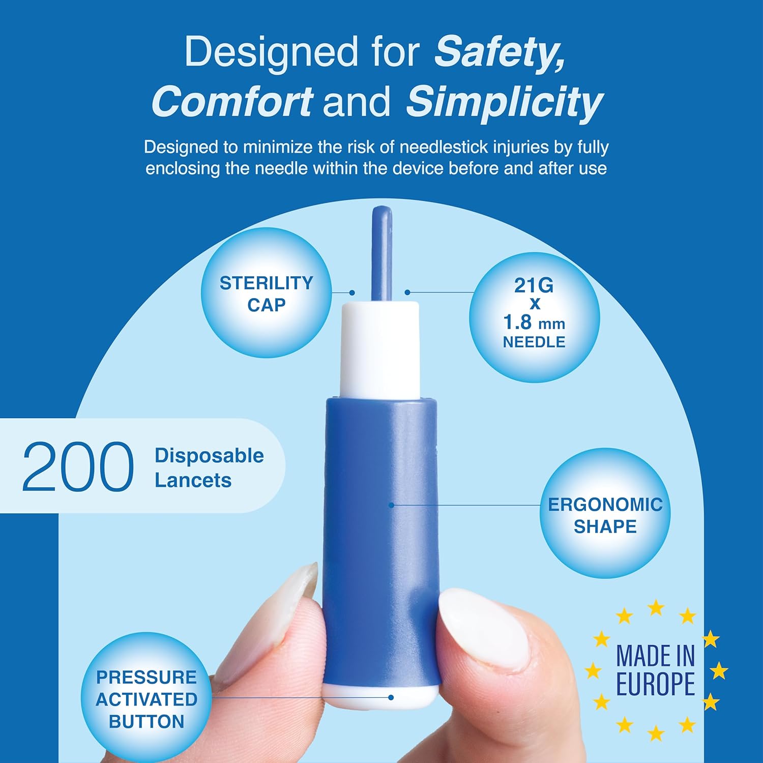 Ideal for glucose monitoring, hemoglobin testing, and other point-of-care diagnostics requiring a drop of blood. The universal fit ensures compatibility with most lancing devices or direct fingerstick use. Sterile, non-pyrogenic, and latex-free for safe use in clinical and home settings.