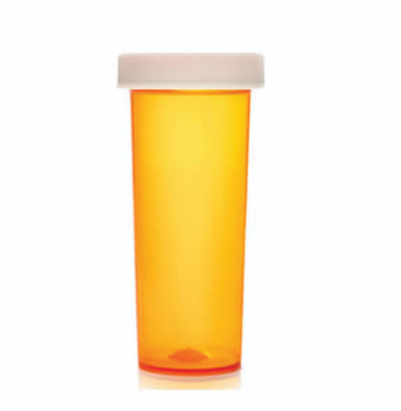 Ovals and Vials 08496-4021-18 ColorSafe 40 dram Amber Vial with Child Resistant Cap CRC amber polypropylene construction child resistant push and turn cap meets CPSC and USP light and tight standards large label area includes 5% free snap caps. Packaged 180 per case.
